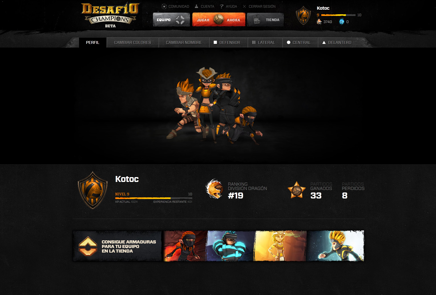 Desafio Champions is an Action Sports MMORPG game based on soccer where you duke it out against another opponent in a 1 on 1 real-time match.